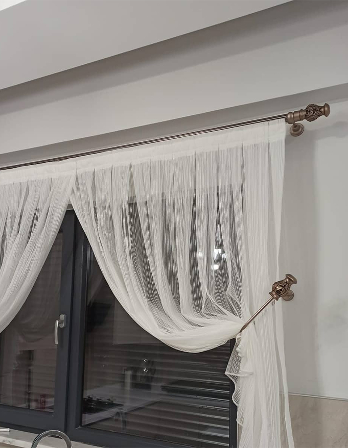 Perde aksesuarları çeşitlerimiz mevcuttur. Renso, Kolbağı, Braçhol, Sarkıt, Tavan Braçhol ve Tavan Bağlama bulunmaktadır. Her modele ve renge uygulanabilmektedir.